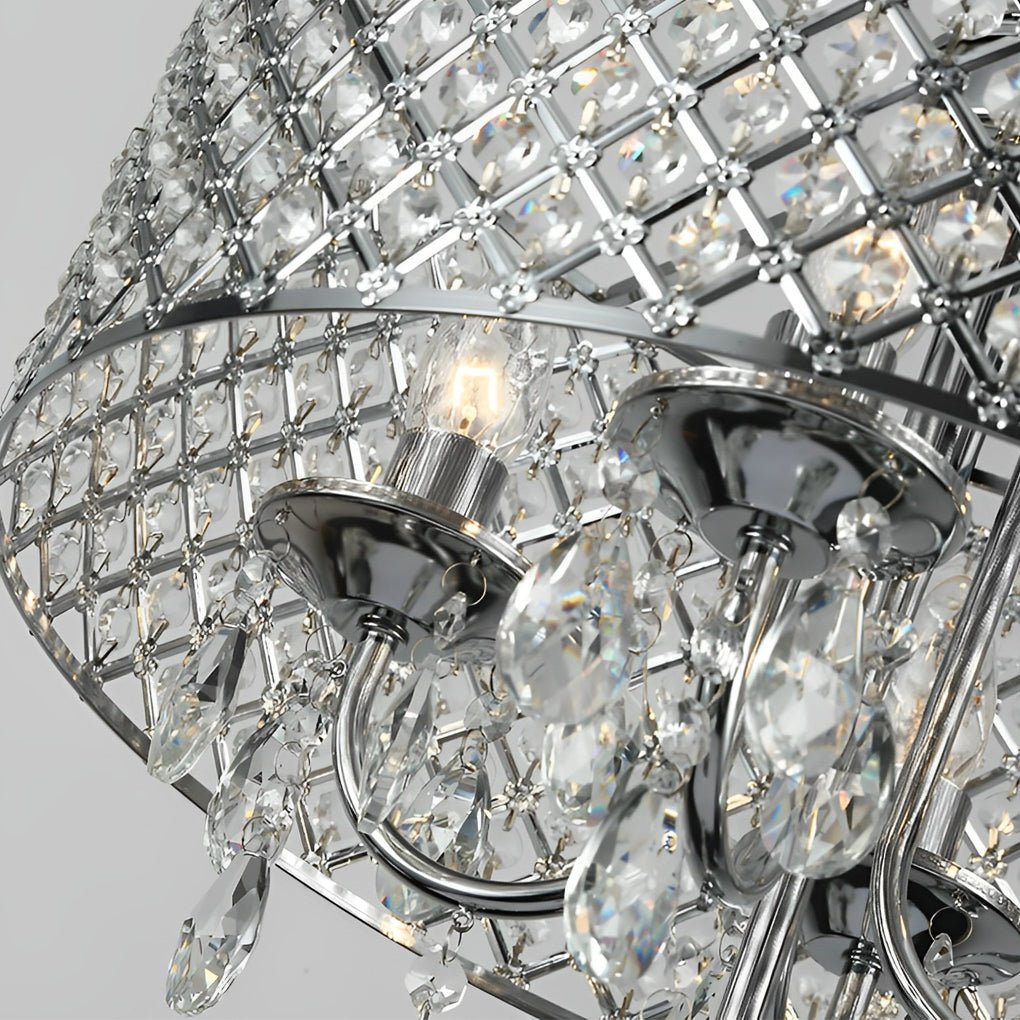 This chandelier features a construction of iron and crystal decoration, offering durability and rust resistance with a delicate texture. The crystal elements provide a high refractive index and good light transmission, suitable for indoor lighting to create a retro atmosphere of rustic elegance and luxury.