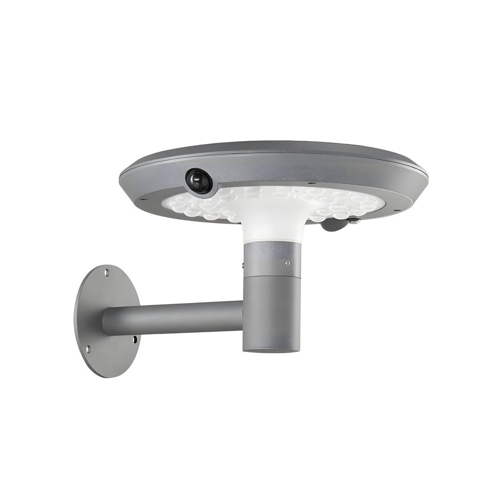 Illuminate outdoor spaces with this round solar outdoor wall light. Crafted from sturdy aluminum and featuring a sleek PC lampshade, this light offers both style and durability for exterior use.