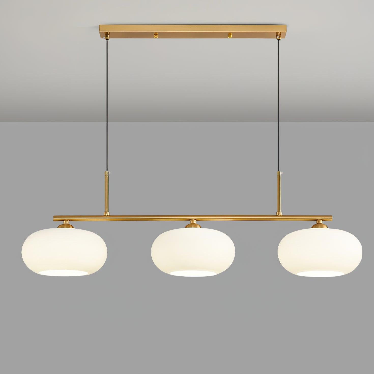 The MINIHOUZZ Sculptural 3-Light Pendant features a sleek design with modern globe-shaped shades, delivering balanced illumination. Its height-adjustable functionality allows for versatile placement over a dining room table or kitchen island, integrating seamlessly into various interior designs.
