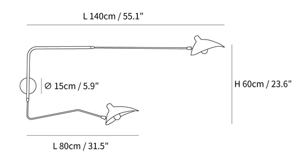 2 Heads Size: L 140cm x H 60cm / L 55″ x H 23.6″