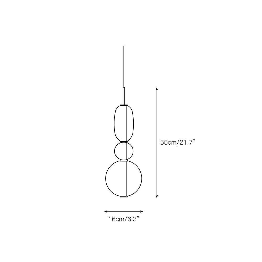 Model C: D 18cm x H 54.5cm / ∅ 7.1″ x H 21.5″. (59′ hanging wire.) (Power ~8W)