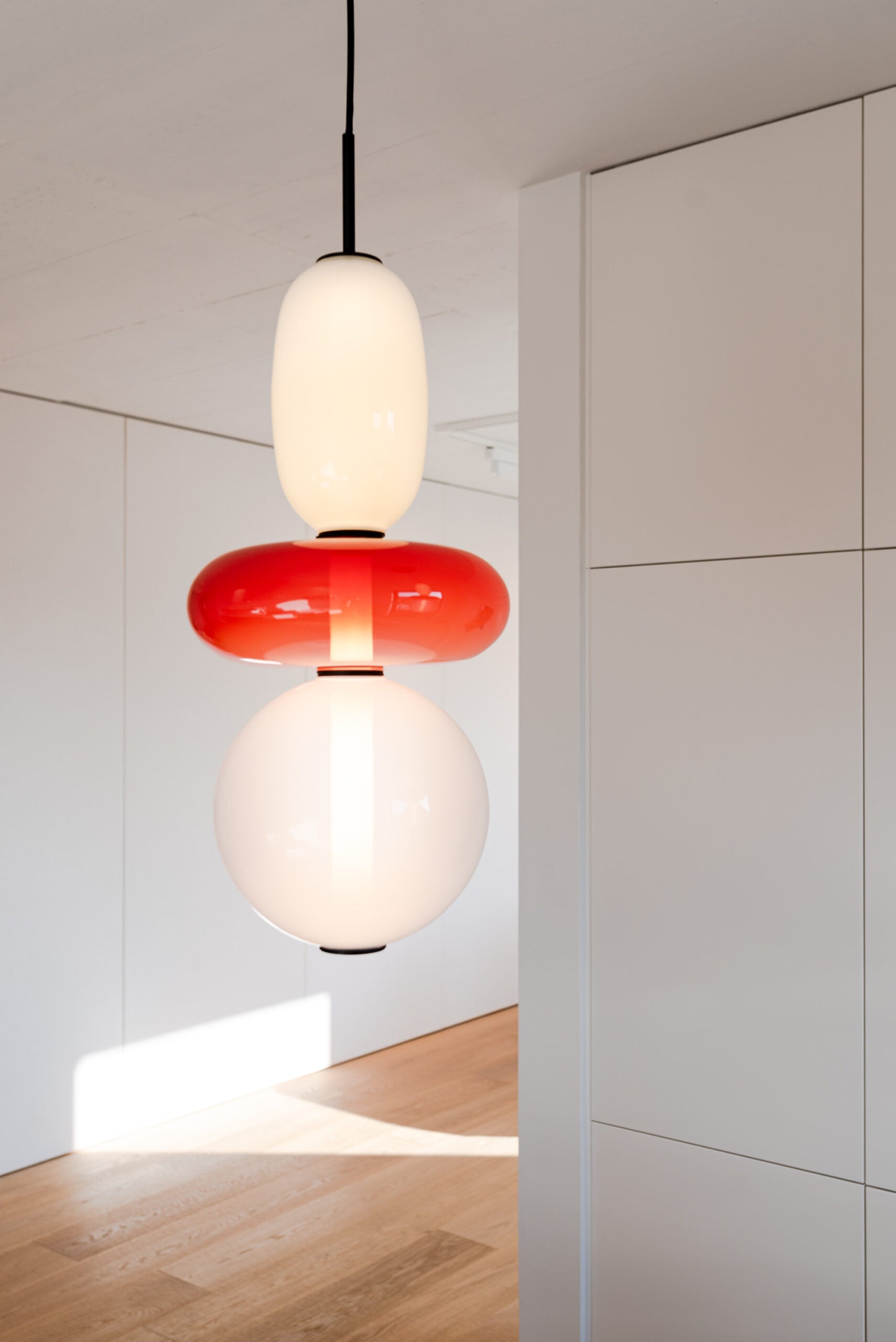 Model G: D 18cm x H 76cm / ∅ 7.1″ x H 29.9″. (59′ hanging wire.) (Power ~20W)