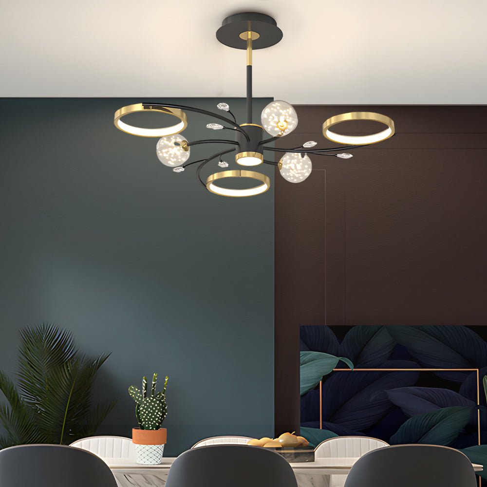 This elegant ceiling lamp features a design inspired by nature, taking the shape of blooming flowers and branches. Constructed with exquisite workmanship, it is designed for durability and to maintain its aesthetic appeal over time, serving as a decorative lighting element in various spaces.