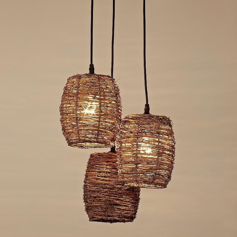 3 Piece Set of Transparent Burlywood Wicker Pendant Light Living Room Light