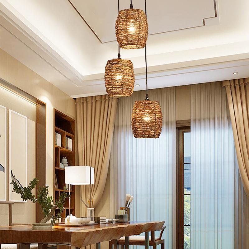 Be the first to review “3 Piece Set of Transparent Burlywood Wicker Pendant Light Living Room Light”