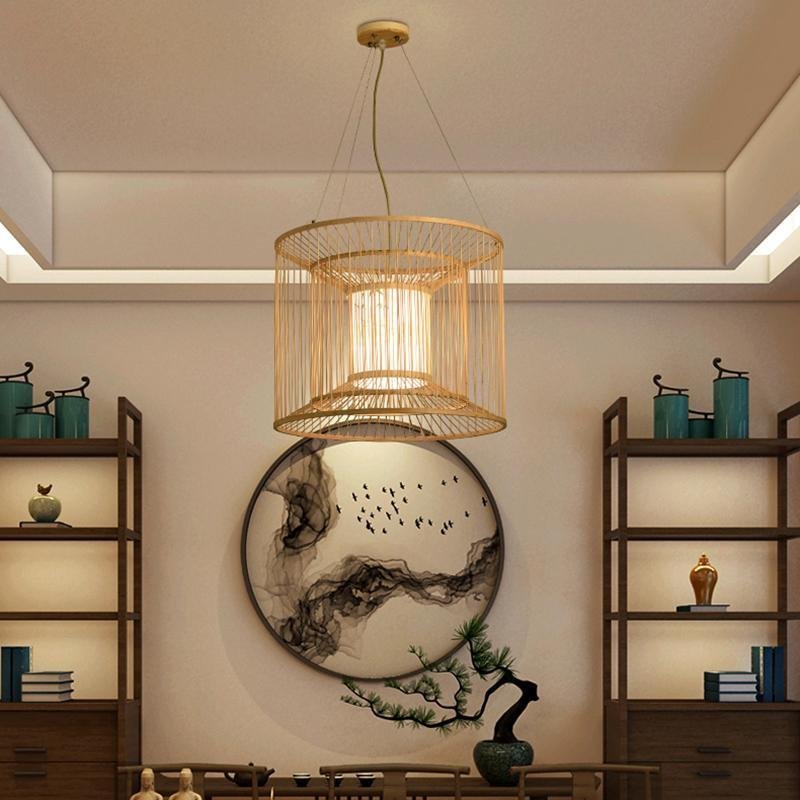 Multi-Layer Cylindrical Cage Pendant Light Decorative Bamboo Pendant Light