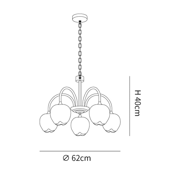 The Tulip Matcha Chandelier features a white glass lampshade and a matcha finish, offering a fresh, modern aesthetic suitable for various interior spaces.