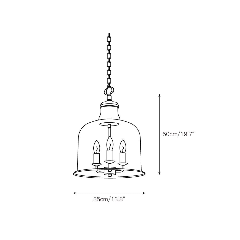 3 heads: D 35cm x H 50cm / ∅ 13.8″ x H 19.7″. (39.4′ hanging chain.)