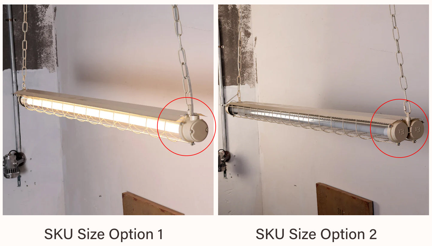 L 123cm x W 10cm x H 10cm / L 48.4″ x W 3.9″ x H 3.9″. (70.9″ hanging chain. Power ~18W)