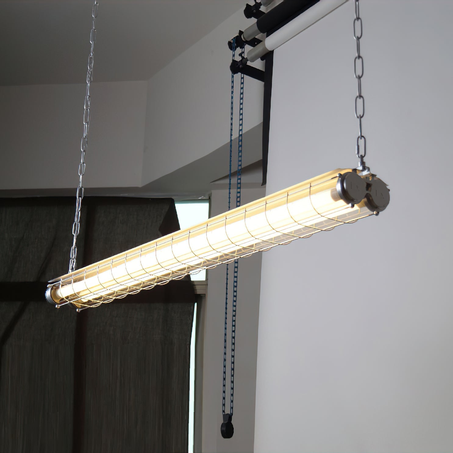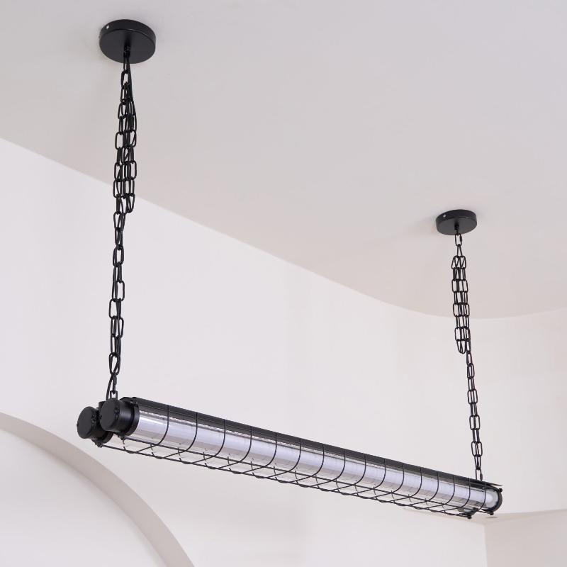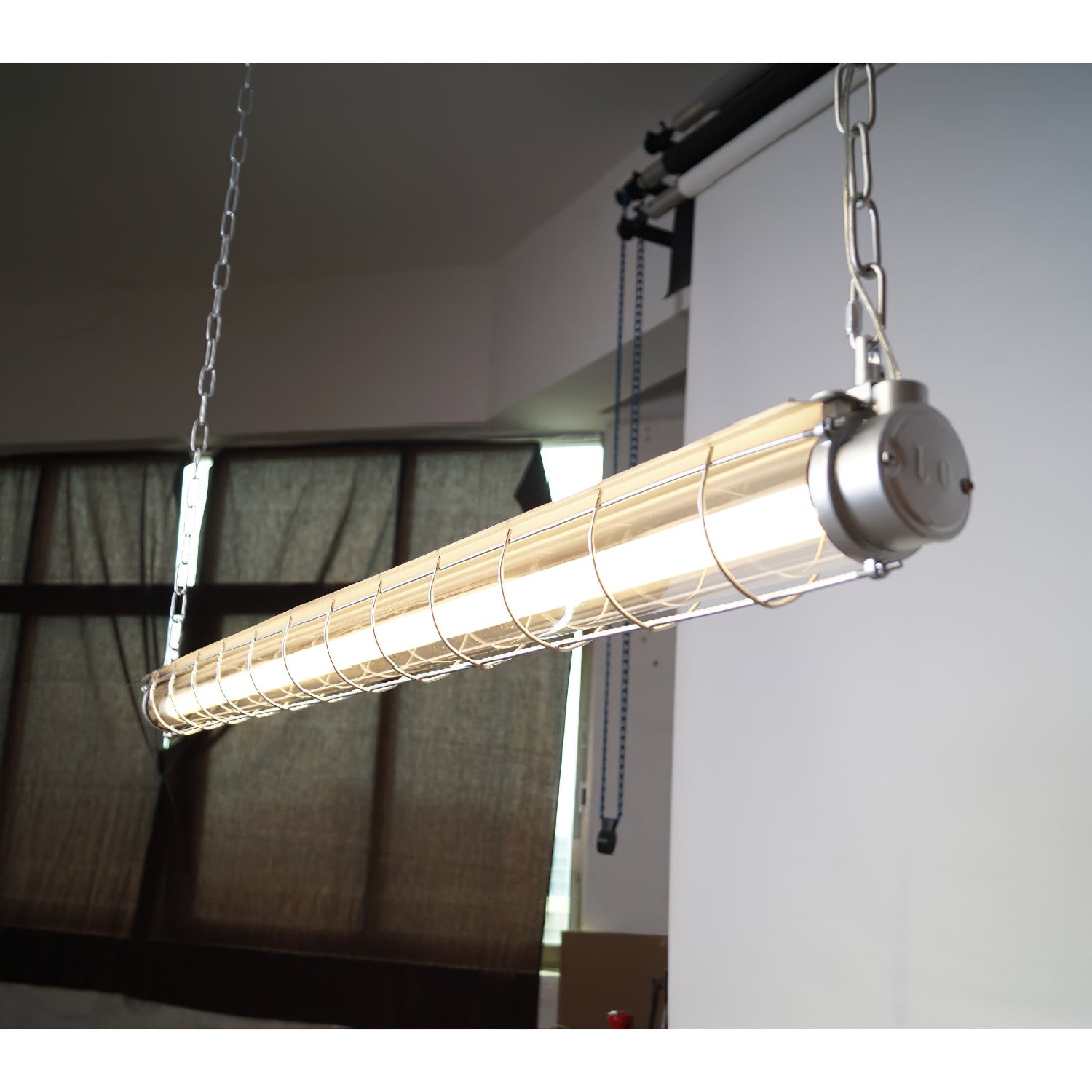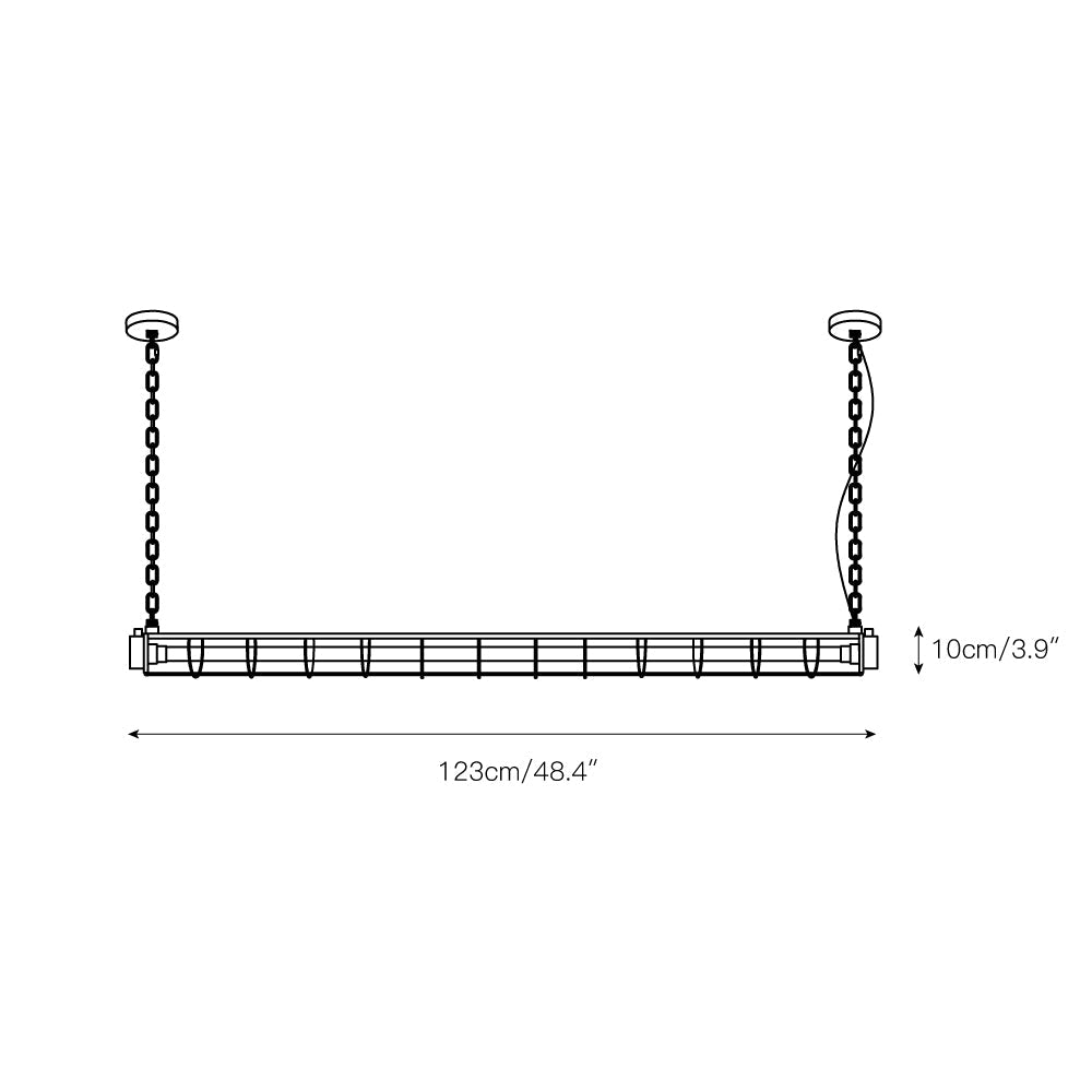 L 123cm x W 10cm x H 10cm / L 48.4″ x W 3.9″ x H 3.9″. (70.9″ hanging chain. Power ~18W)