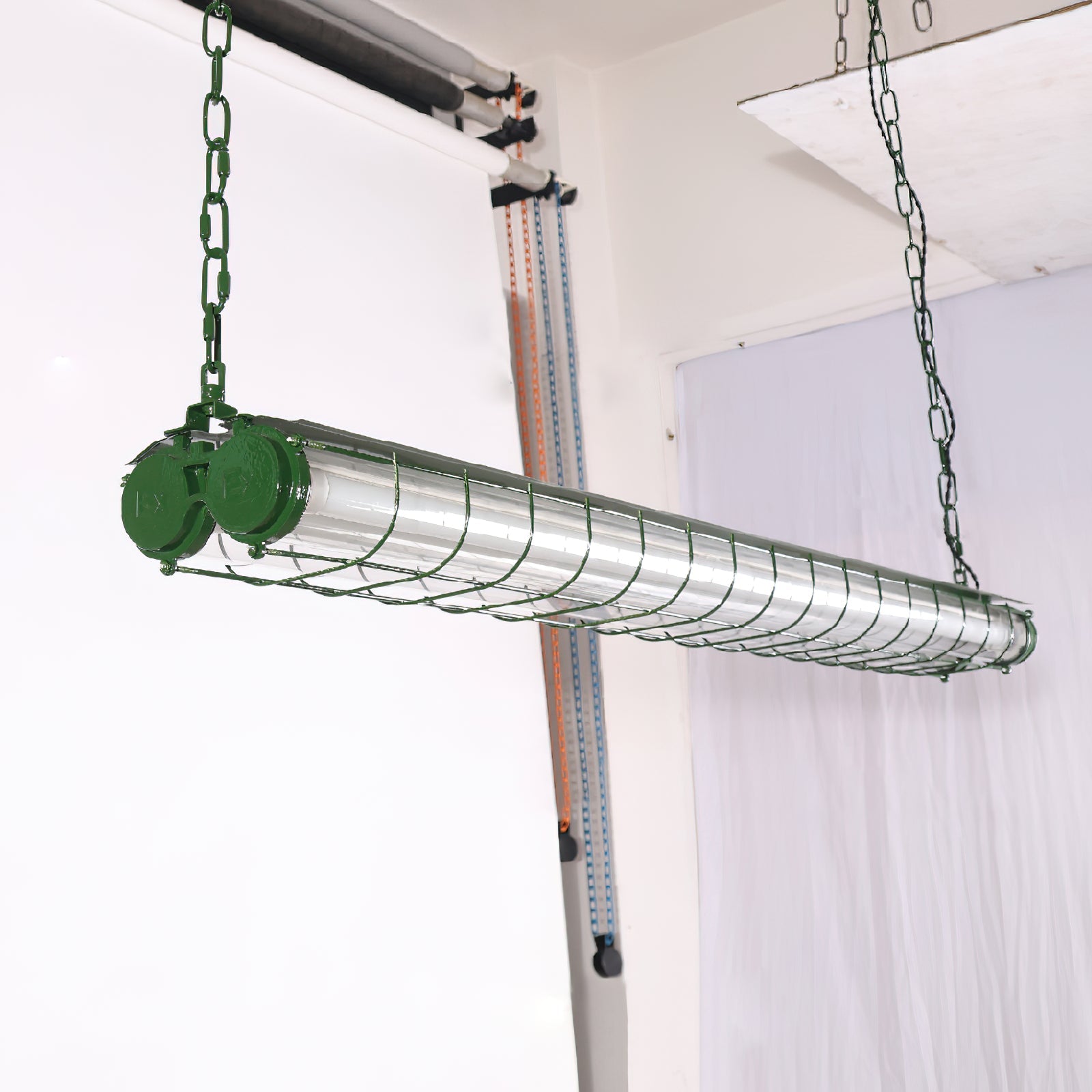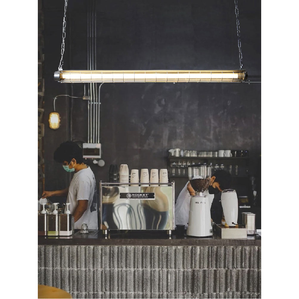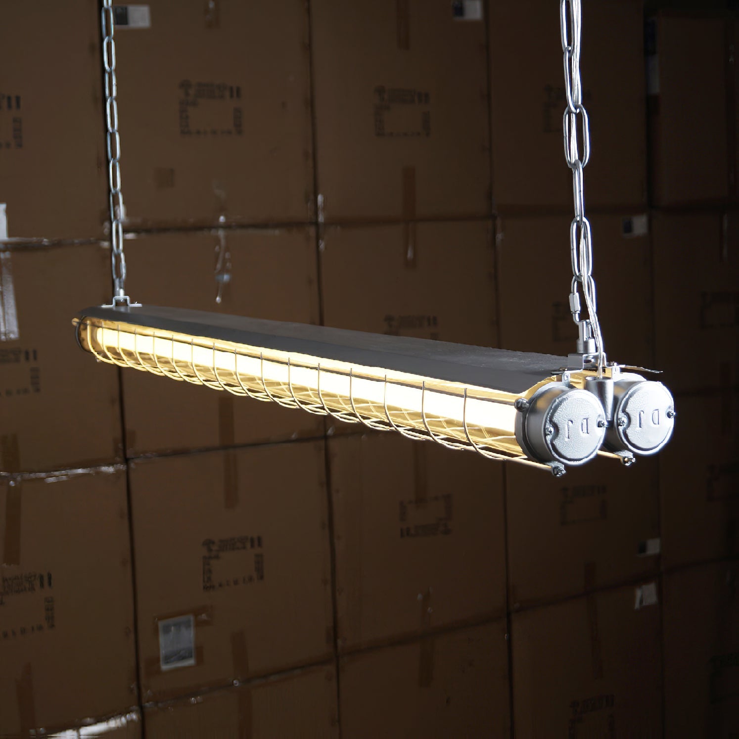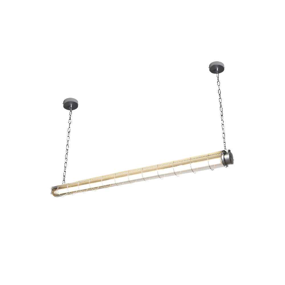 L 123cm x W 10cm x H 10cm / L 48.4″ x W 3.9″ x H 3.9″. (70.9″ hanging chain. Power ~18W)