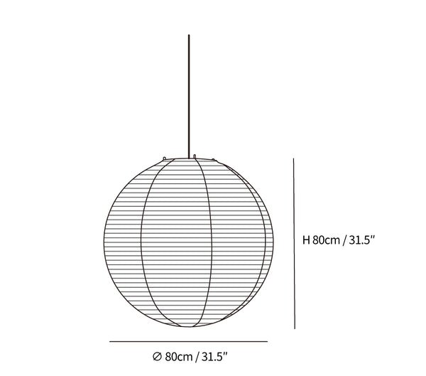 The Akari Round Series Pendant Lamp features a circular lantern design, meticulously crafted from lightweight paper and bamboo. It provides soft, ambient illumination suitable for various indoor spaces.