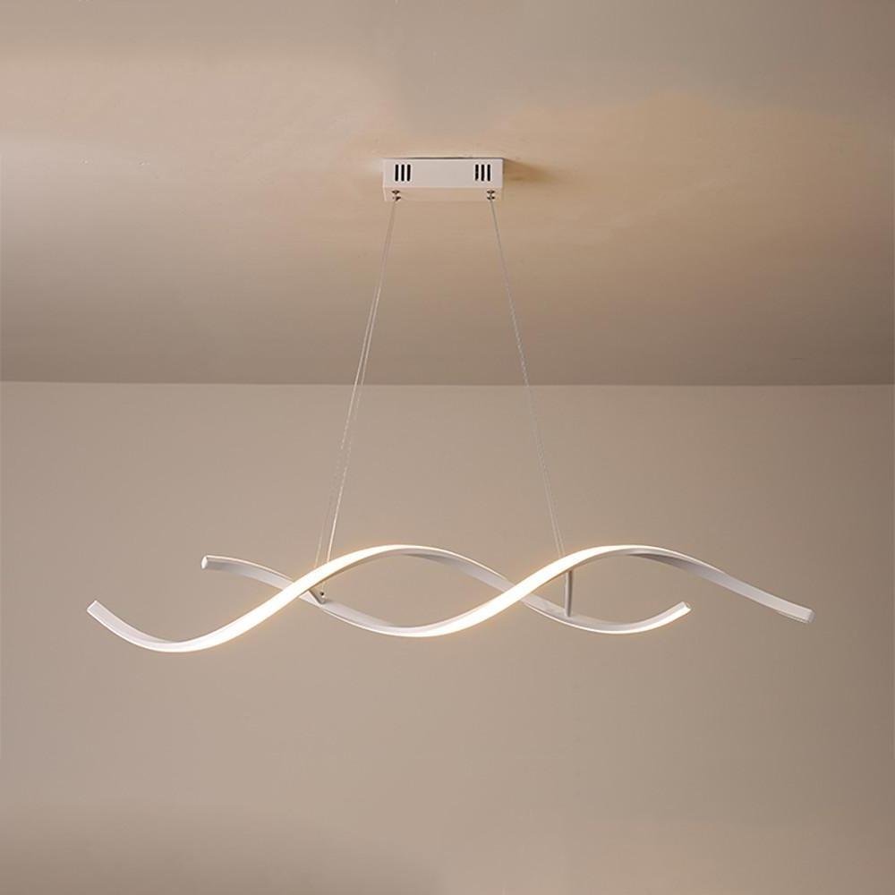 - This Wave Design Modern Pendant Light features an artistic, undulating silhouette, suspended from the ceiling by thin, adjustable cords. It offers a blend of contemporary elegance and functionality suitable for various interior spaces. Crafted with durable materials and a sleek, neutral finish, this fixture is an ideal addition to dining rooms, living areas, or bedrooms seeking modern sophistication.