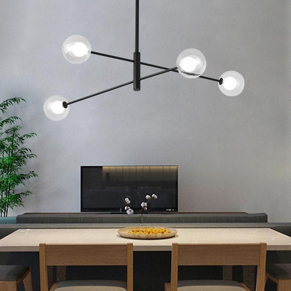 4-light Glass LED Linear Design Black Modern Sputnik Chandelier Ceiling Lights