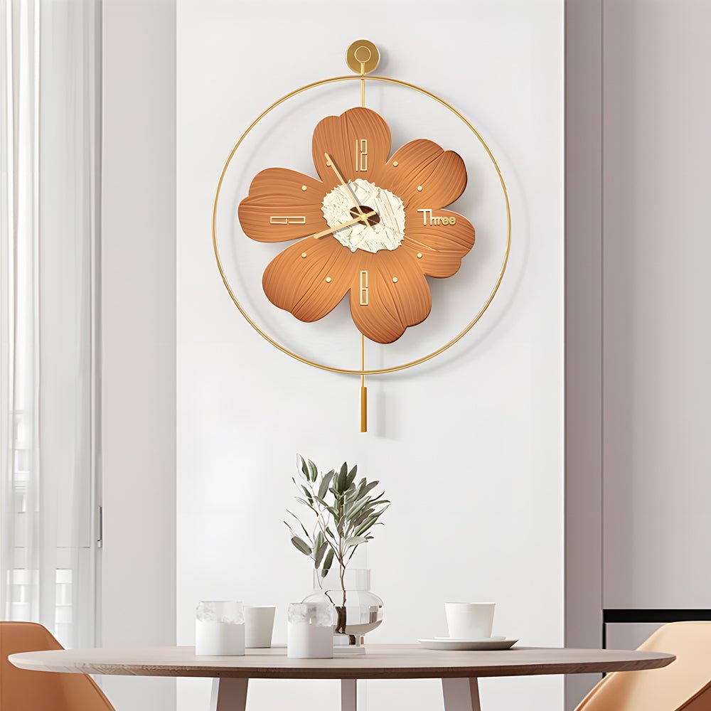 Round Metal Battery Operated LED Flower Wall Clock